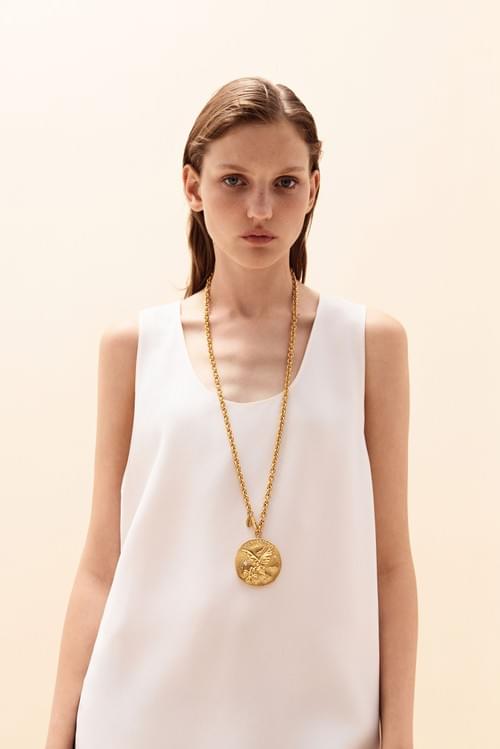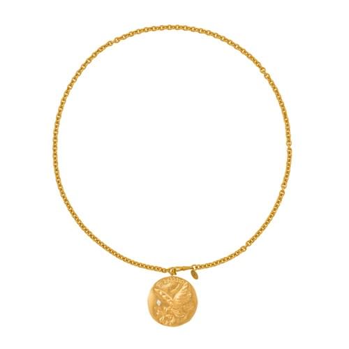 The brand's signature angel wing pendant is embellished with the inlay of star zirconia. A modern shape is created with delicate craftsmanship. The timeless luster shows the unique texture of this pendant.