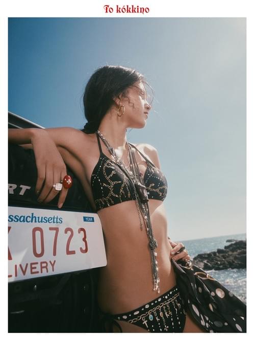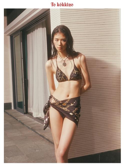 tokokkino "Beige Gold Chain Glow" Gemstone Bikini 1