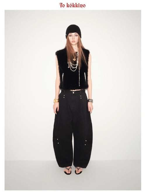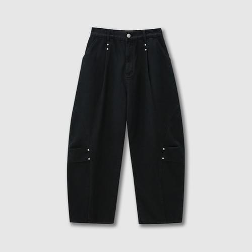 tokokkino*「Black Studs」 Black Stud Hand-stitched Cropped Kick Flare Pants