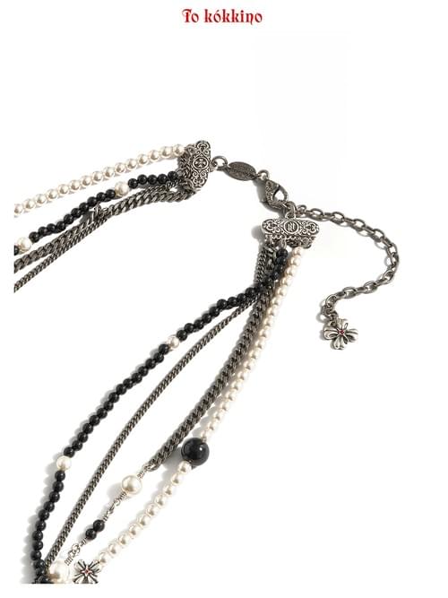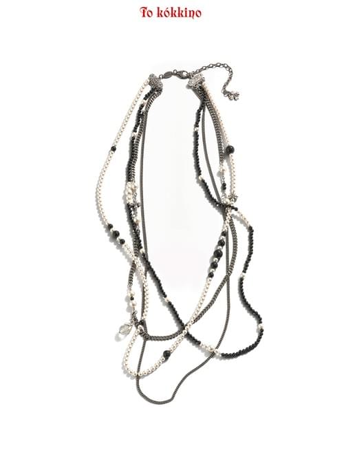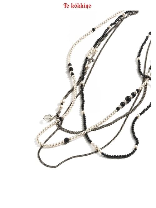 tokokkino "Black & White Field" Two-Tone Black and White Pearl Necklace Set