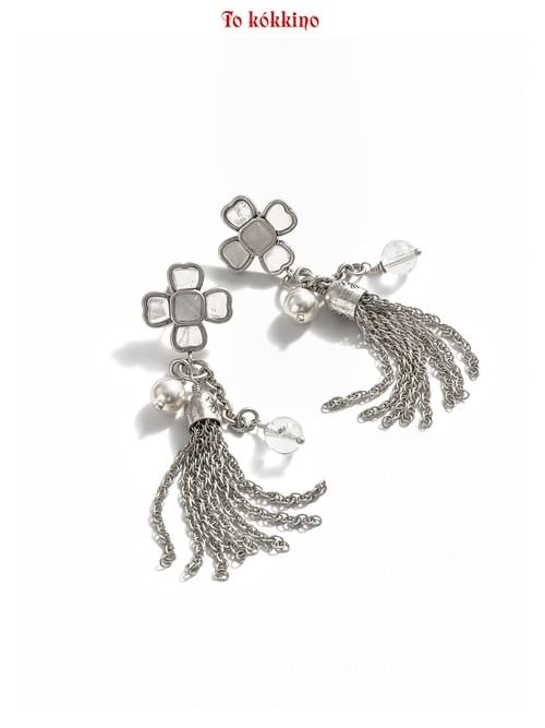 tokokkino "Cold Silver Flow" Crystal Silver-Burnt Tassel Earrings