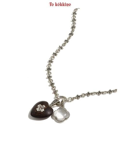 Strung together with a butterfly-pattern chain, the pendant is a combination of a heart-shaped purple sandalwood piece and natural clear crystal. It features a lightweight structure, ideal for layering, with exquisite and delicate details.