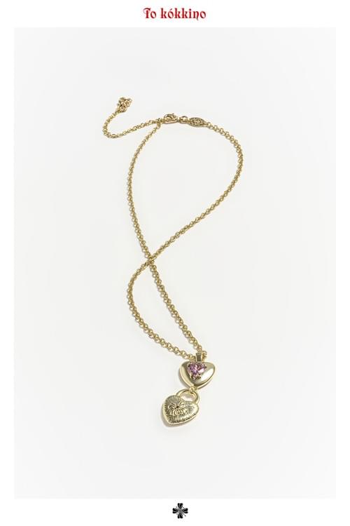 The double-heart design rests on a champagne-gold chain, where softness and sharpness coexist.