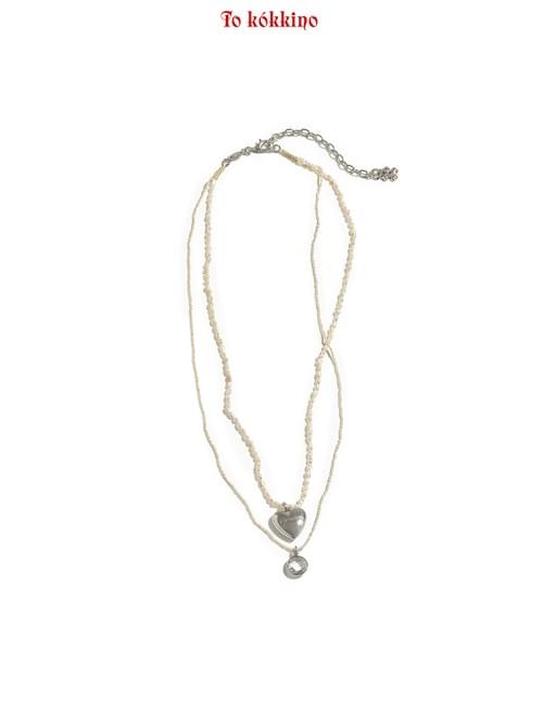 tokokkino*「Double-layered Thoughts」Double-layered Fine Pearl Heart Pendant Necklace