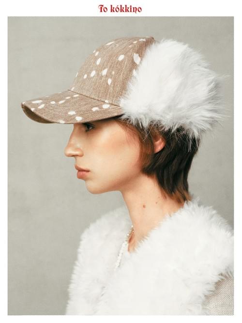 The deer pattern covers the baseball cap, creating a relaxed and playful vibe.