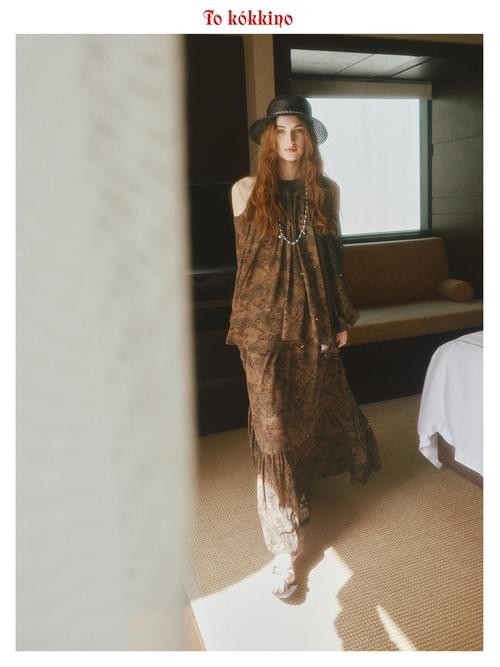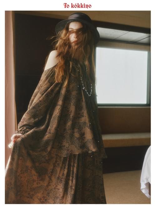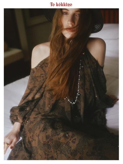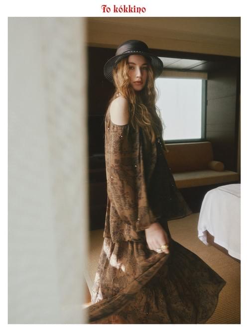 tokokkino "Green Leopard Light & Shadow" Pearl & Crystal Green Leopard Off-the-Shoulder Set