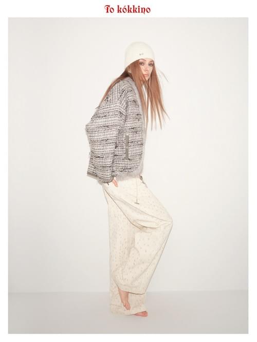 tokokkino*「Grey-Pink Entanglement」 Grey-Pink Tweed Coat