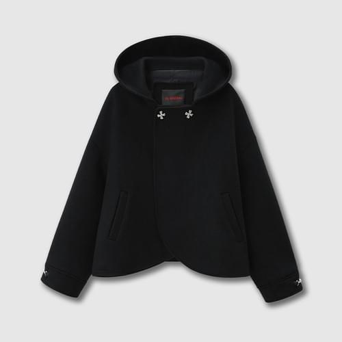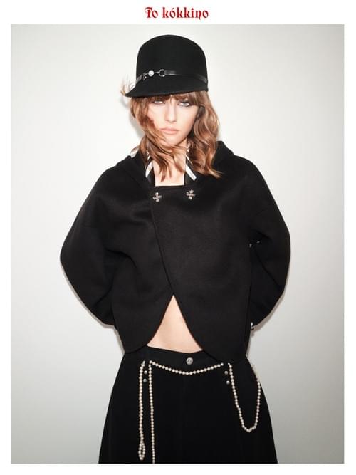 The cape-style construction delivers a liberating sense of coverage, while the black tweed exudes understated yet substantial presence. The adjustable curved hem creates a natural sense of movement when in motion, striking a perfect balance between restraint and commanding aura.