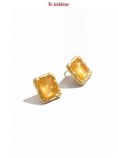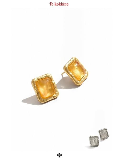 Square structures in gold and silver are superimposed, featuring delicate textures on the surface and accented with citrine and white crystals.