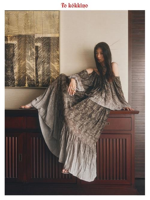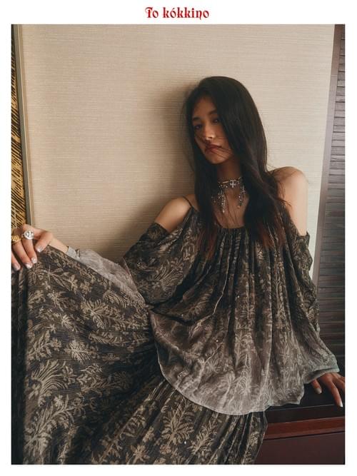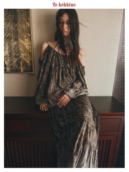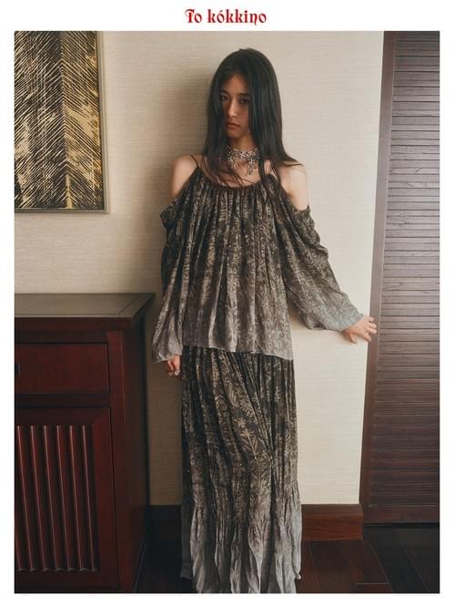 tokokkino "Sink Crystal" & "Grey-Green Broken Waves" Crystal Pearl Off-the-Shoulder Strap Set