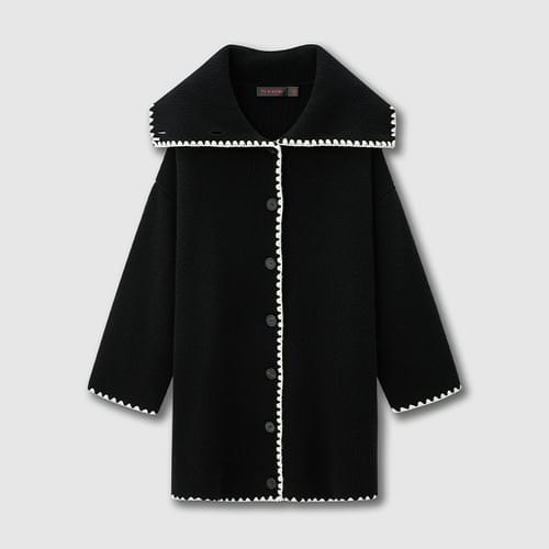 The black base is trimmed with white piping, and the sailor collar features a distinct yet relaxed structure. The cashmere fabric strikes a perfect balance between a structured and soft silhouette.