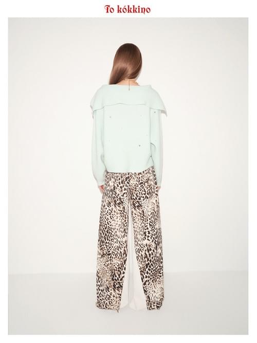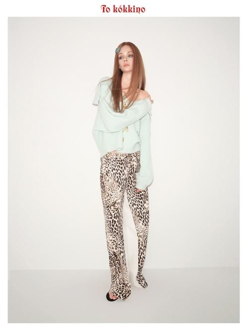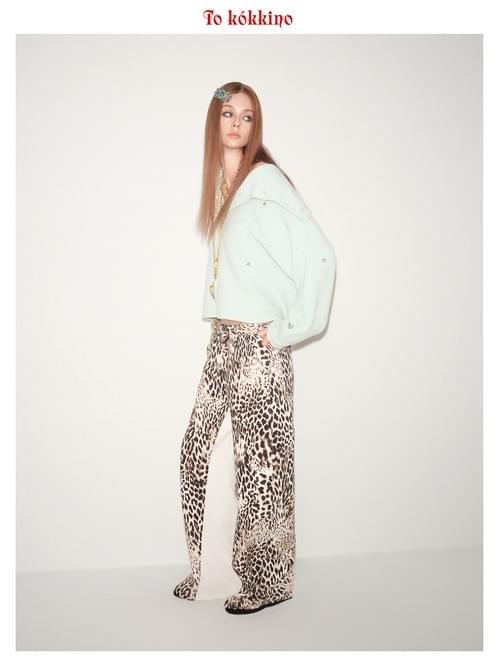 The white-based leopard print, treated with color-fixation printing, boasts distinct yet understated patterns. The mid-low rise straight-leg cut tames the wildness within a structured silhouette, achieving a look that is relaxed yet well-defined.