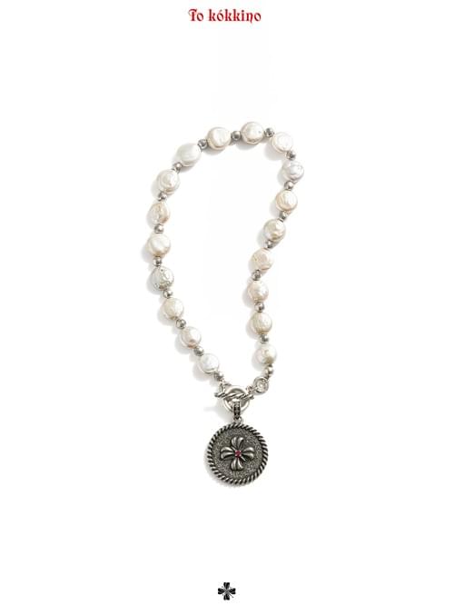 tokokkino "Wild Pearl" Pearl & Ruby Pendant Necklace