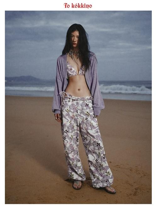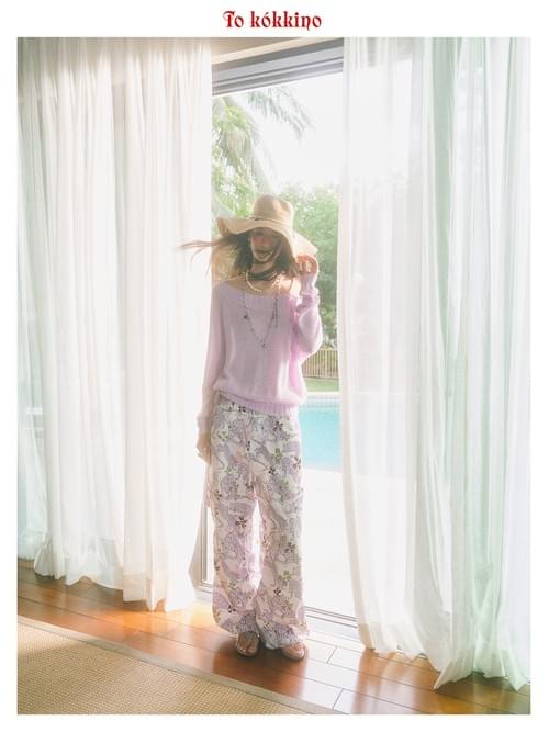 tokokkino "Wild Shadow Takes Shape" Crystal Purple Leopard Low-Rise Casual Pants