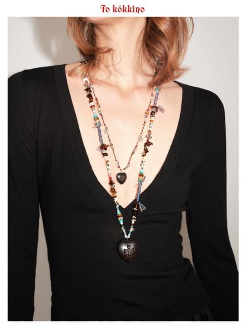 tokokkino*「Wildness Tandem」Long Necklace with Multiple Materials and Purple Gold Ebony