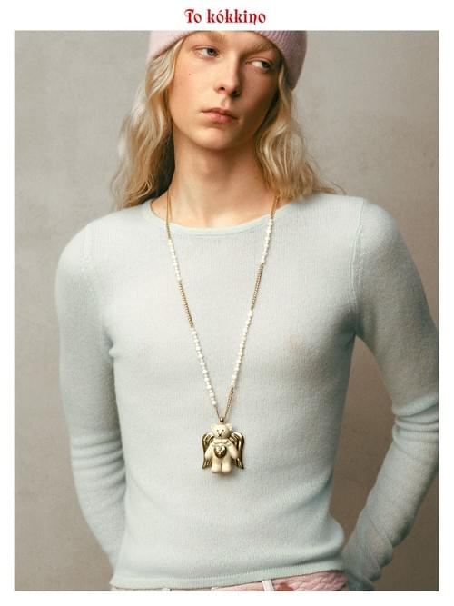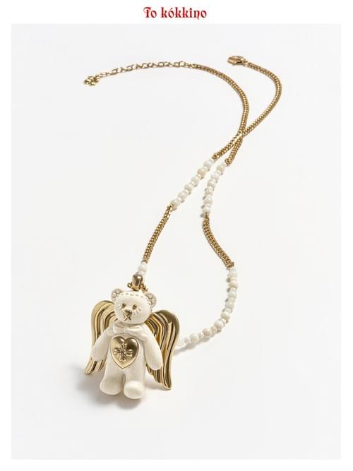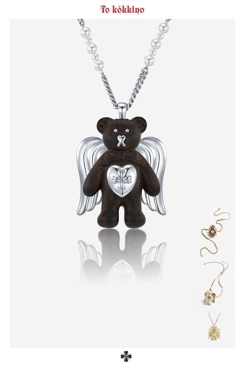 tokokkino* Wooden Angel Pearl Bear Necklace